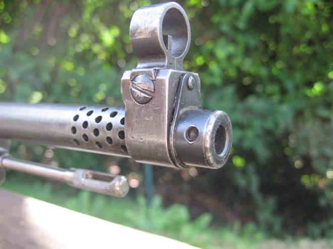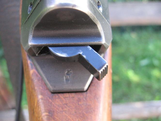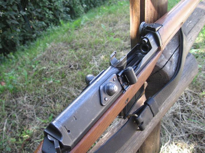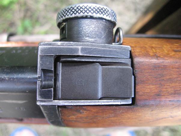 Alzo del tipo a cursore su base elevata per mezzo di un tamburo laterale tarato da 100 a 600 metri per la 6,5mm m/94 skarp patron e da 100 a 800 metri per la Skarp Patron m/94, projektil m/41. |