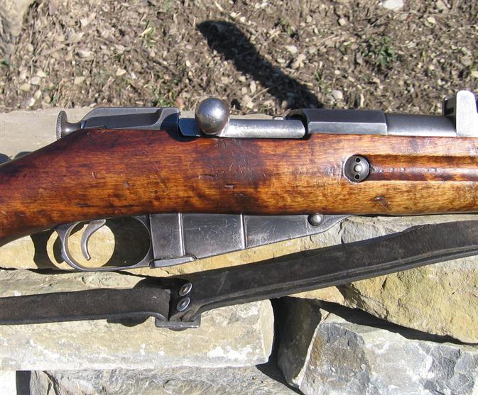 Particolare preso dall’alto della culatta del M39. Si riconosce facilmente il nottolino circolare necessario manovrare per inserire la sicura e smontare l’otturatore.