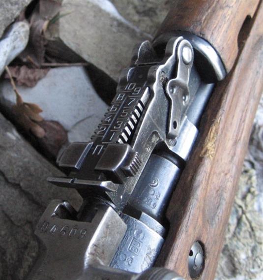 3 Il tipico alzo con il marchio simile ad una M stilizzata indicante che SKS in questione era nato per